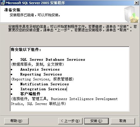 現(xiàn)在就開始安裝完整的SQL2005數(shù)據(jù)庫(kù),時(shí)間根據(jù)你電腦配置而定,直到出現(xiàn)如下界面: